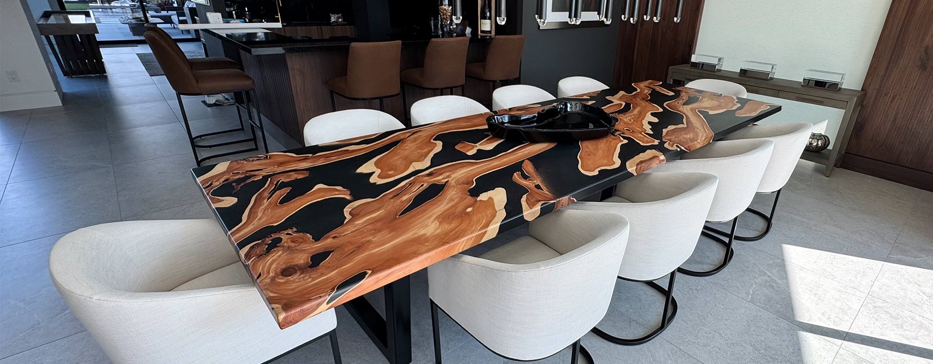 Design your perfect custom dining table with our team. Choose your wood, style, edge, and base to create a handcrafted piece that fits your home and personality.