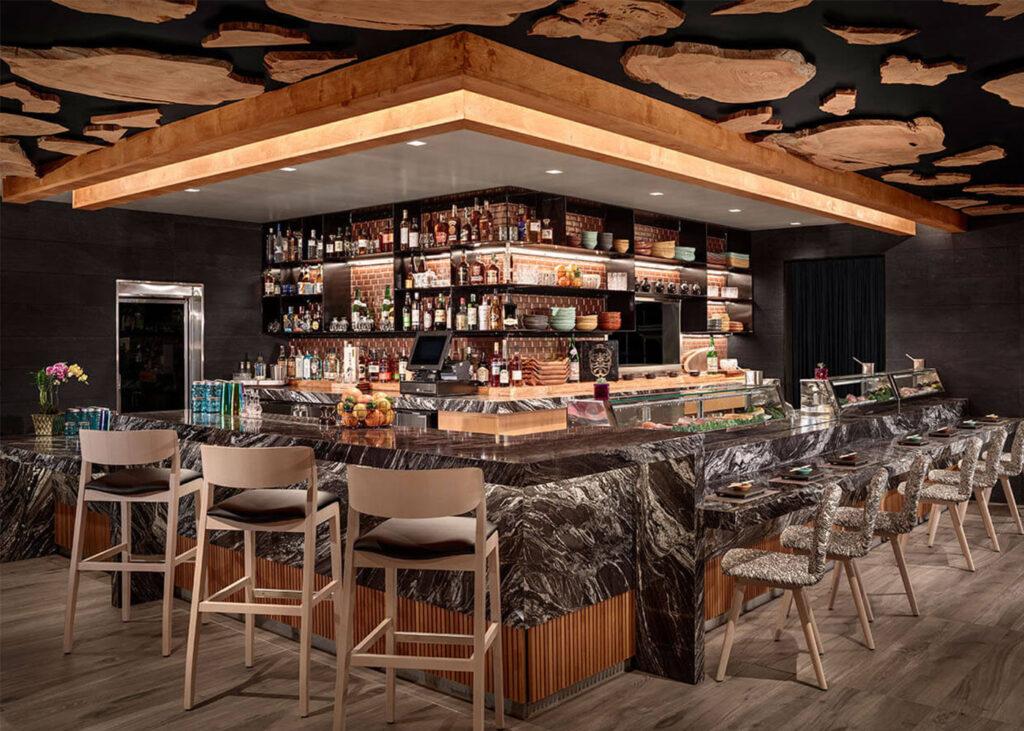 Complete redesign of a historic building in Downtown, San Diego with Live Edge accents made of reclaimed wood.