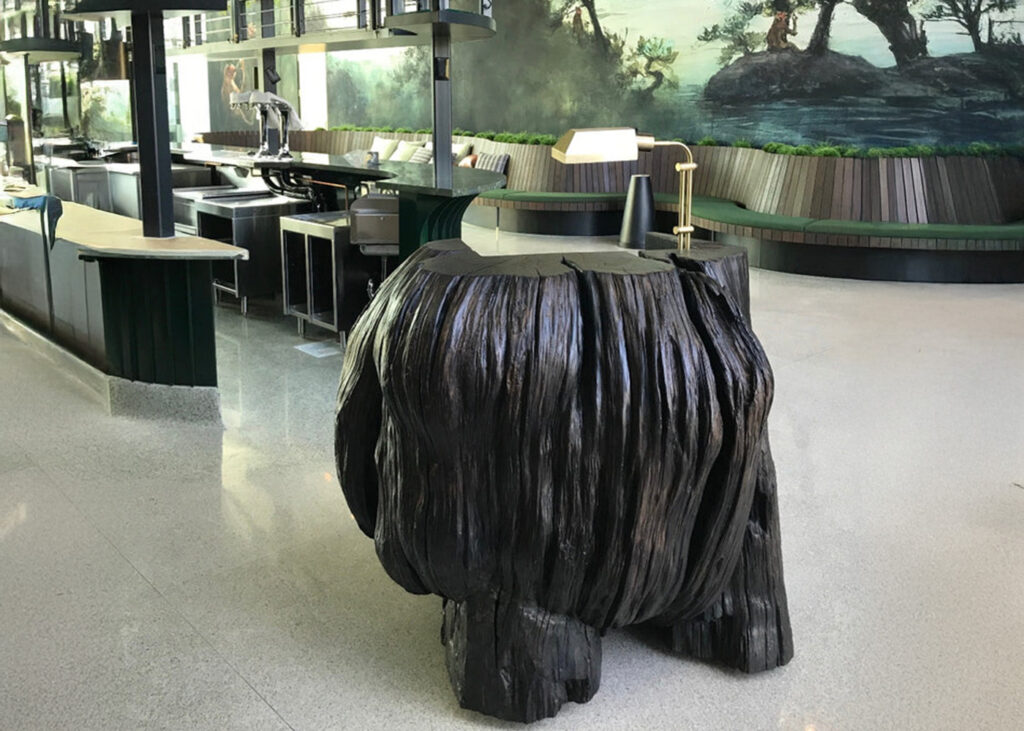 Custom made hostess desk from 300 y.o. Cedar Burl for a restaurant & in Torrey Pines area.